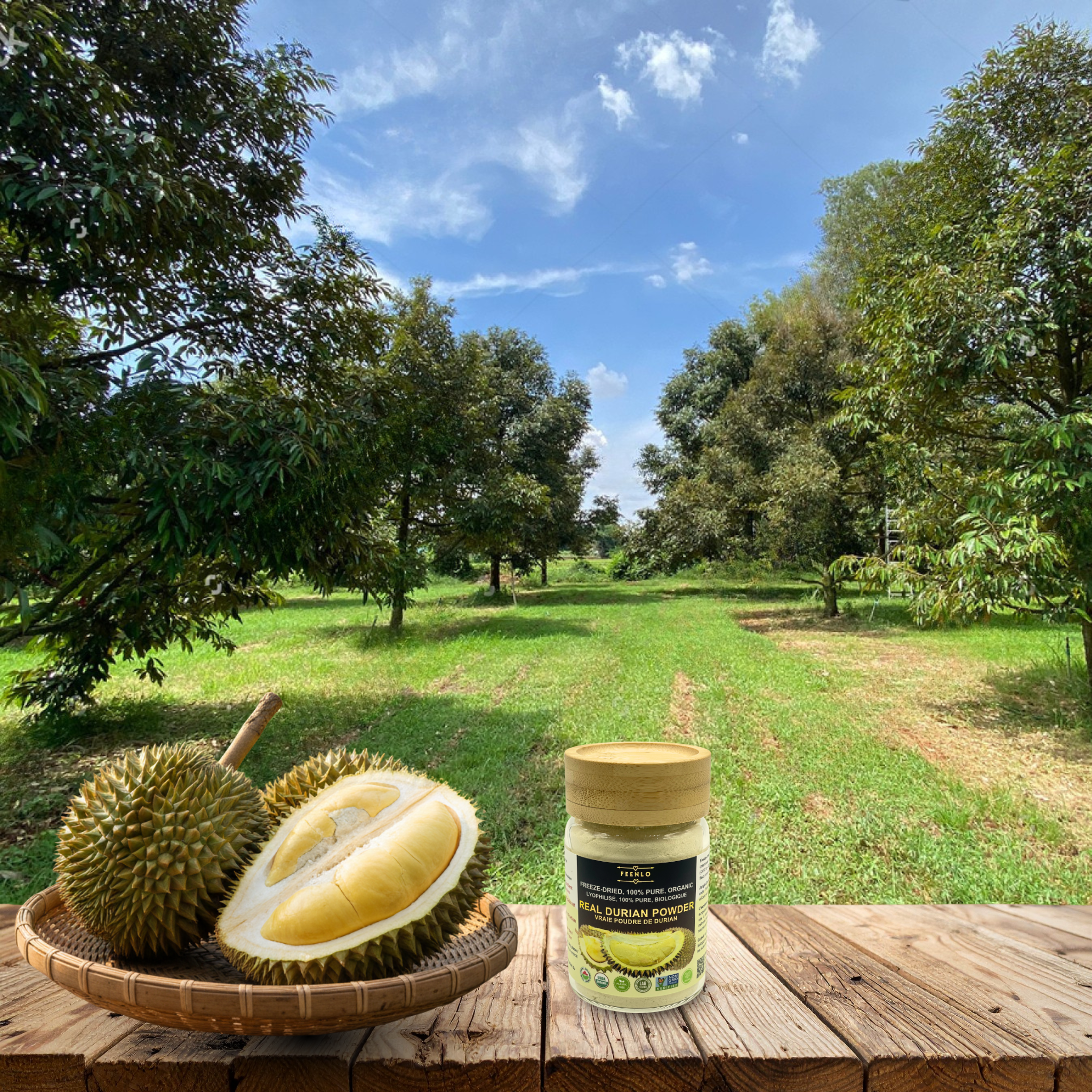 We use a single, organic ingredient: durian fruit sourced directly from non-GMO farms in Thailand. Thriving under open skies, nourished only by natural rain and rich volcanic soil, our durians are never raised in a greenhouse. Organically grown, these durian fruits are inherently more nutrient-dense than their conventional counterparts. We add absolutely no fillers or anti-caking agents that easily dissolve in water. Enjoy the pure, concentrated taste and complete nutrition of real fruit with nothing added.